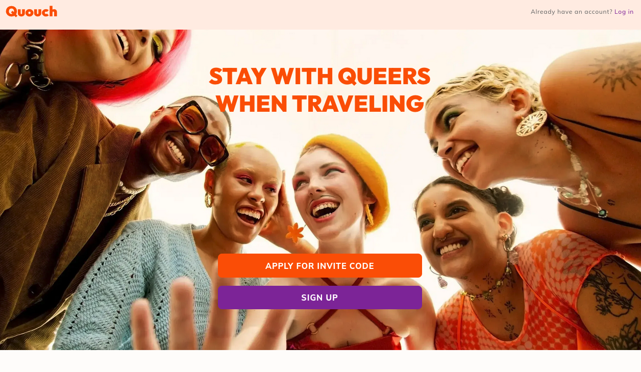 Quouch is less of a home exchange platform and more like Couchsurfing for queers. It was created by co-founders Nora and Lisbeth to prioritize the needs of women and queer people. For now, it’s an invite-only platform, and members are requested not to share the code with “cis, straight, dyadic (non-intersex) men.”